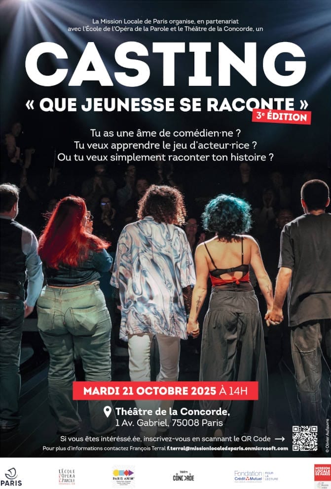 Notre équipe de choc sera présente avec les comédiens Lauréline, Alice, Bilal, et les réalisateurs Olivier, Greg et Fidji, peut-être aussi Arthur Navellou, des jeunes de « Que jeunesse se raconte », des représentants de la Mission Locale de Paris et la direction même du Théâtre de la Concorde !